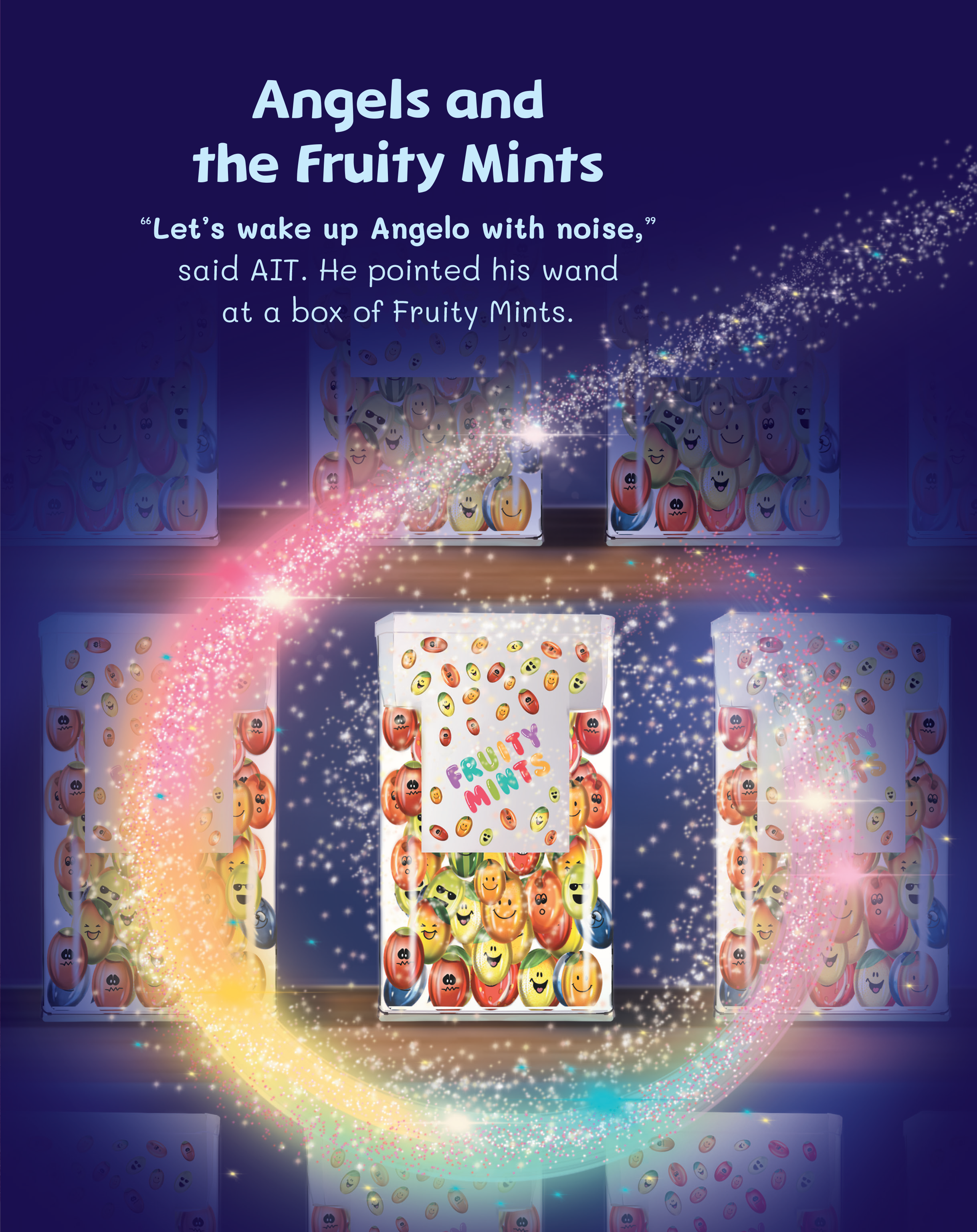 Sangel( Super angel) pointed his magic wand at aisle four where cotton candy was spinning in a cotton candy machine.